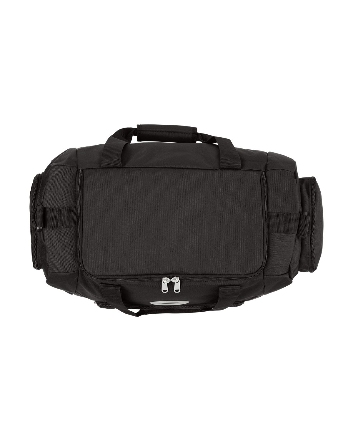 Duffel bag made of 600-denier Polyester with ripstop lining. Abrasion-resistant construction provides lasting durability. Front organizer pocket, side pocket with fleece-lined interior pocket. Large side pocket stores shoes or dirty gym clothes. Dual handles and removable, adjustable air mesh shoulder strap provide multiple carrying options. Not available blank. 23.0000″ W x 12.0000″ H x 10.5000″ D