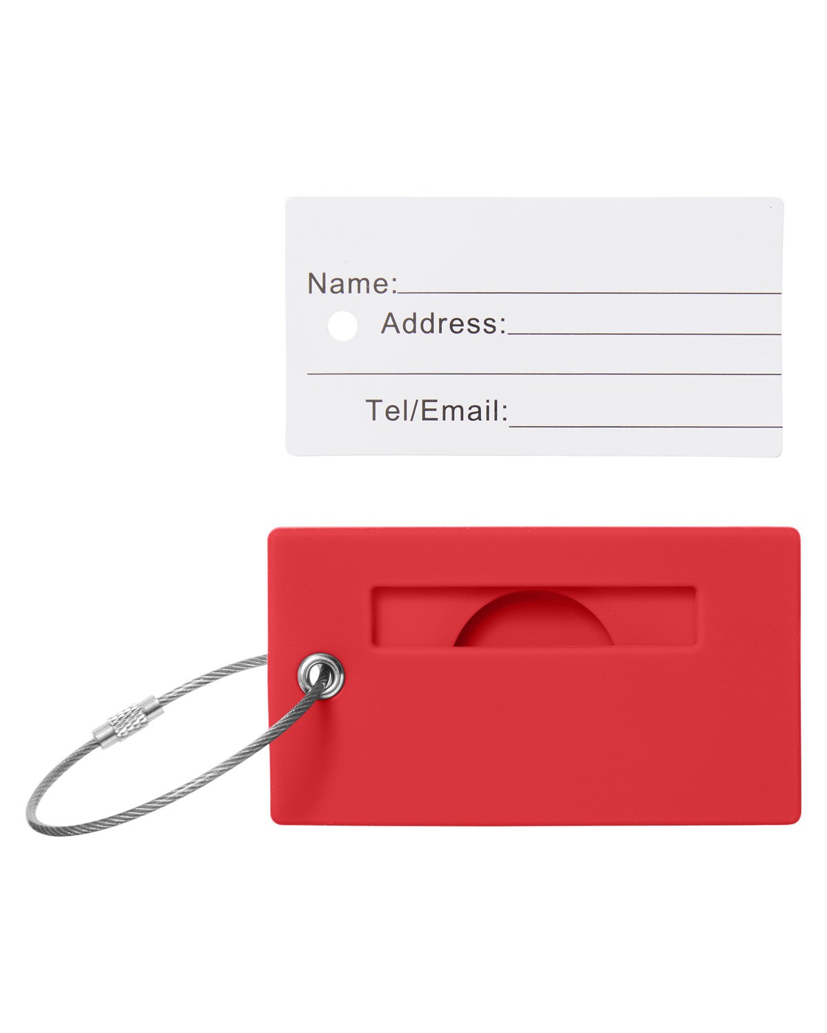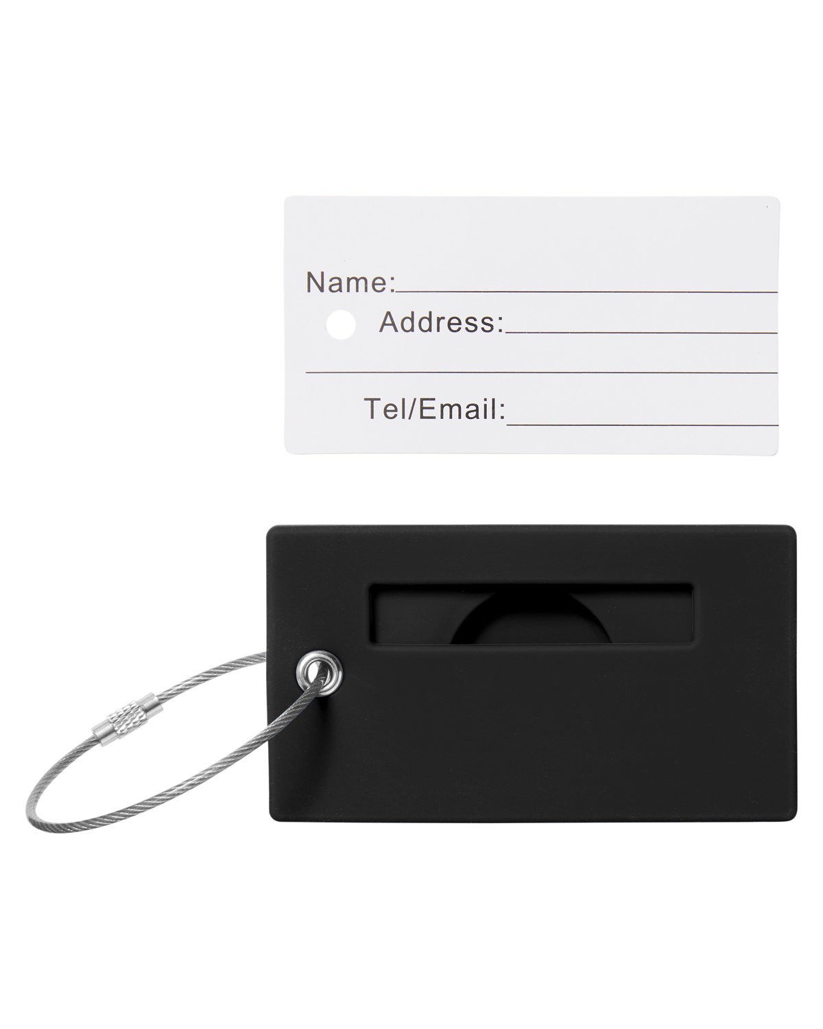 Material: Silicone. Ensure your belongings are easily identifiable and always trackable, combining style and security in one sleek accessory; designed with a special compartment to seamlessly fit an AirTag behind the identification card. ID card 3.4″ W x 1.8″ H; ID window 2.1″ W x 0.4″ H. Assembly of stainless steel braided loop required. 3.5000″ W x 2.0000″ H