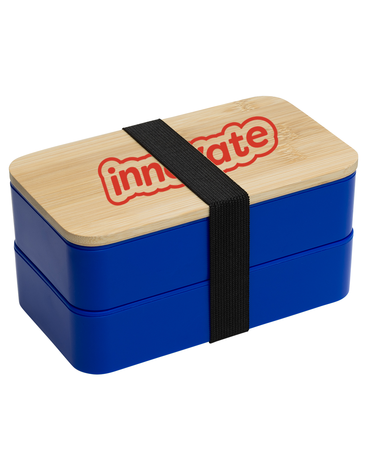 Enjoy lunch with this multi-compartment PP Plastic stackable container with Bamboo lid. Built-in utensil storage between layers for included and reusable spoon, fork and knife. Black elastic band holds the boxes together for easy use on-the-go. This trendy reusable bento box helps the environment and cuts down the use of single-use plastics. PP containers are dishwasher safe (top rack), freezer safe and may be microwaved for a maximum of 3 minutes; containers are intended for reheating, not for cooking. Bamboo lid should be hand washed and kept out of the microwave. 7.2000″ W x 3.7000″ H x 4.1000″ D