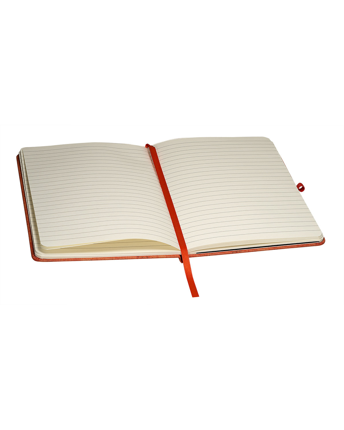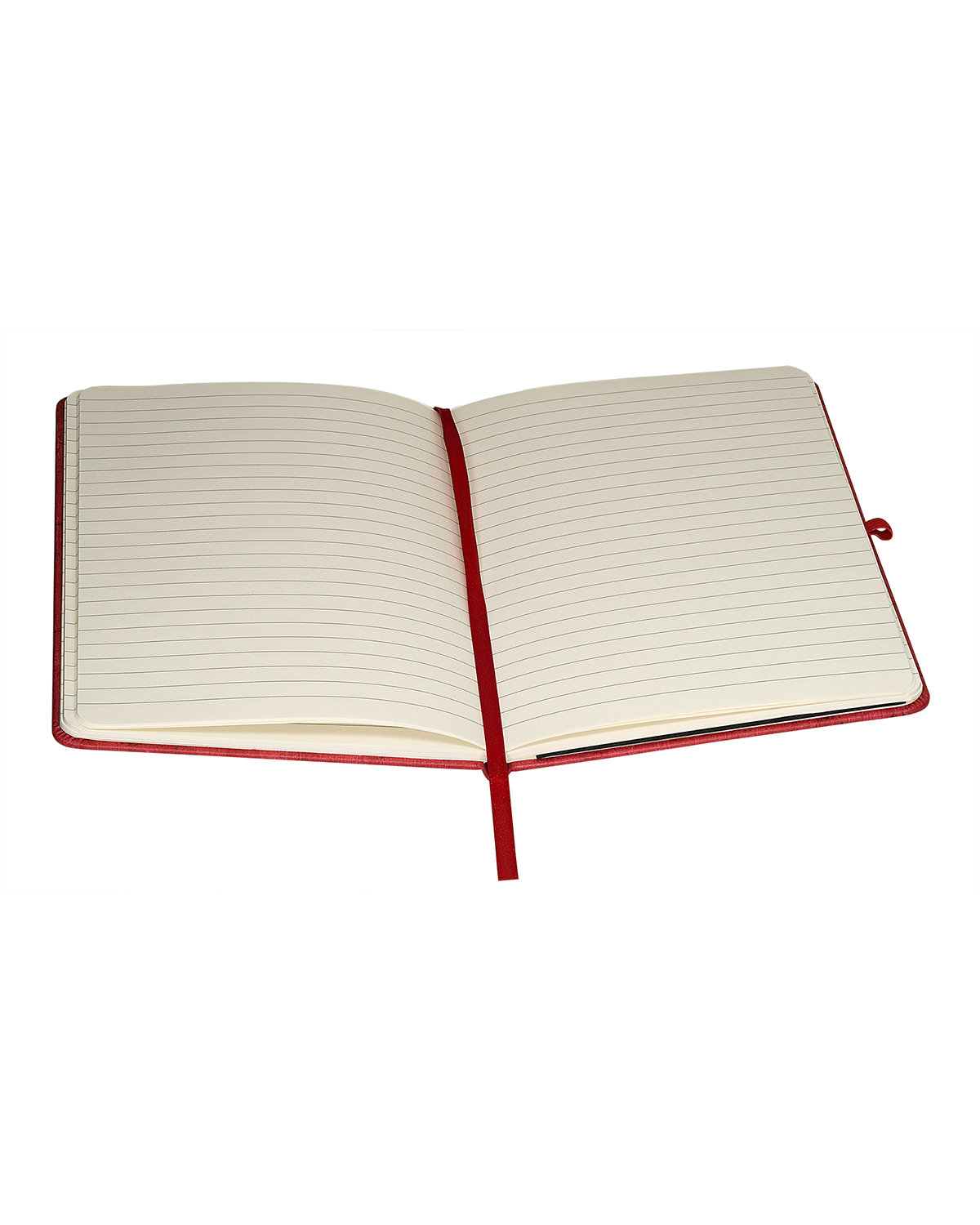 80 ivory ruled pages, elastic loop closure and bookmark. Document pocket on inside back cover. 5.7500″ W x 8.2500″ H x 0.7500″ D