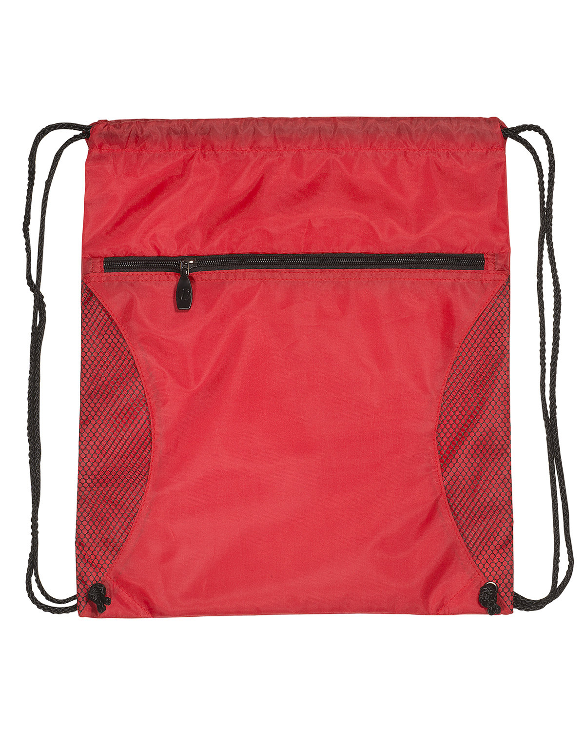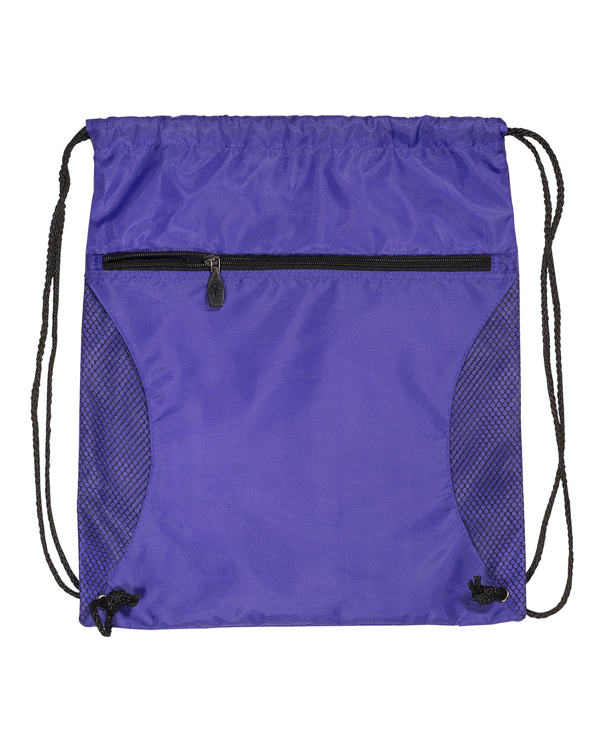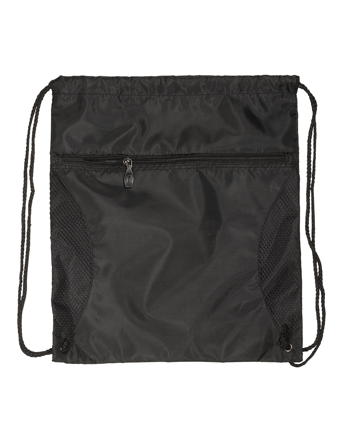 210D Polyester drawstring backpack with mesh side panels. Front zipper pocket. Hand-wash only. Recommended weight tolerance: 11 lbs. 14.0000″ W x 16.5000″ H
