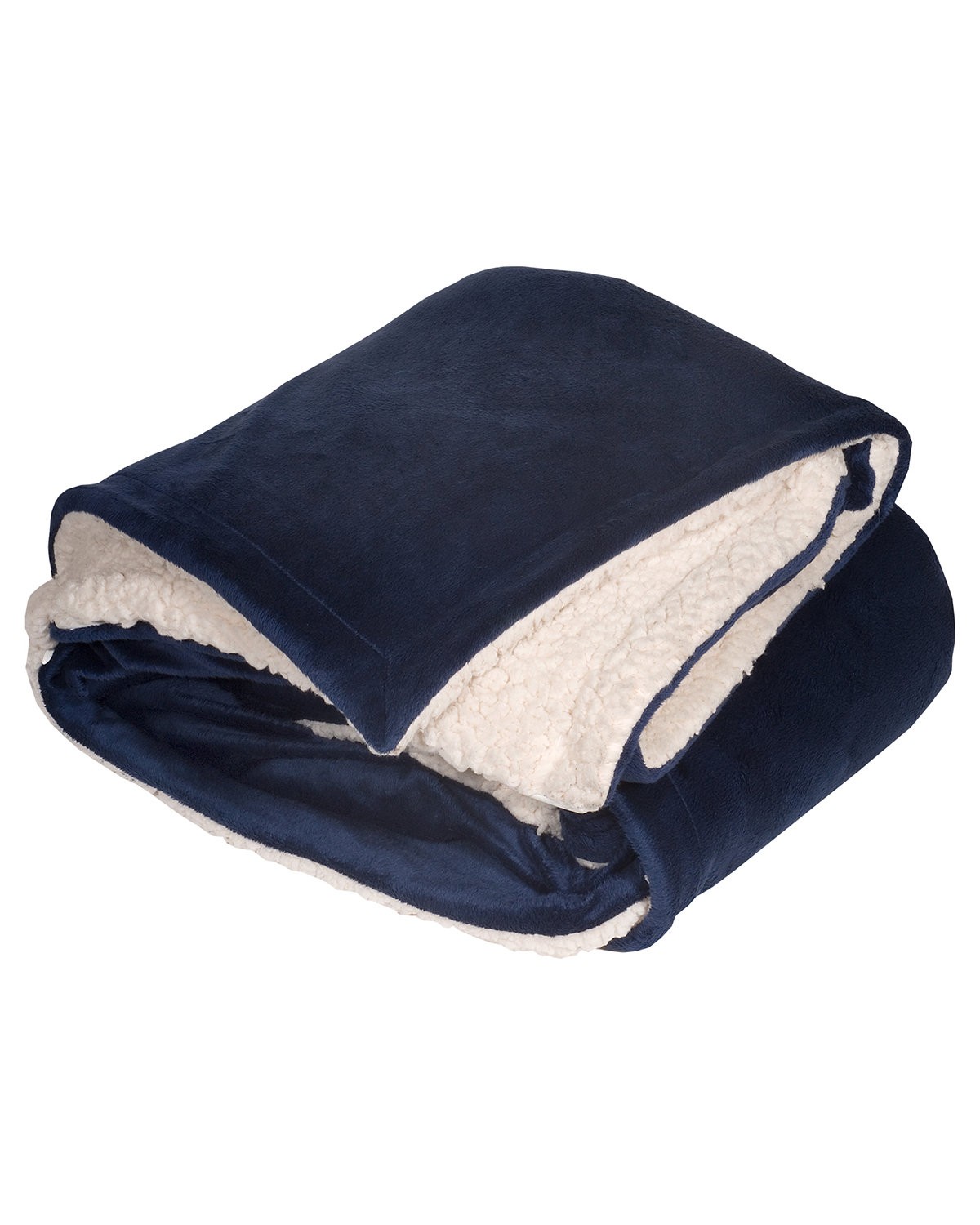 Deluxe double layer blanket soft Velour Polyester faux fur one side reversing to cozy lambswool Sherpa. Made of 100% Polyester faux mink (220 GSM, 11 oz.) with sherpa (240 GSM, 12 oz.). Features hidden 13″l embroidery pocket with concealed zipper for easy decoration. Machine wash cold; hang dry. Each piece comes folded in clear Vinyl zip storage bag (12.5″w x 14″l x 3.5″d) with top carry handle. 50.0000″ W x 60.0000″ H