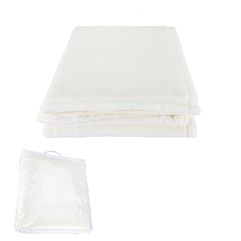 Cozy blanket made of 100% Polyester Faux Mink (300 GSM, 15 oz.) with self finish hem and decorative top stitch. Hand-wash only. Each piece comes folded in clear Vinyl zip storage bag with top carry handle (Blanket folded into pouch measures approx. 12.5″W x 14″H x 3.5″D). 50.0000″ W x 60.0000″ H
