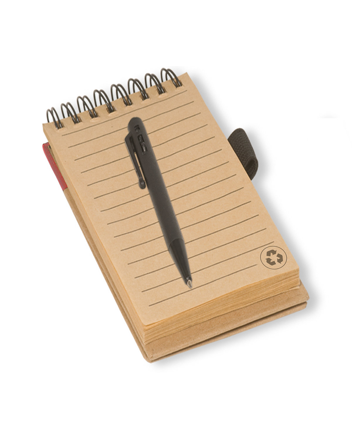 Includes 60 lined sheets of natural color wide ruled 70g paper. Elastic closure, metal spiral  binding and elastic pen loop. Includes black ABS Plastic Micro-Writer pen with black ink. 3.0000″ W x 5.0000″ H x 0.2500″ D