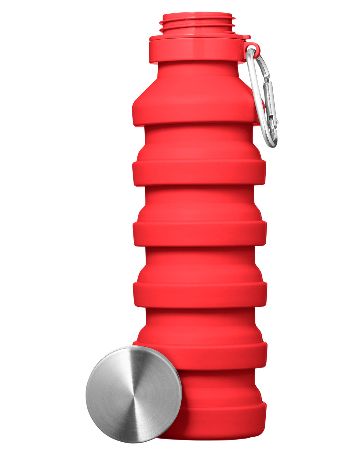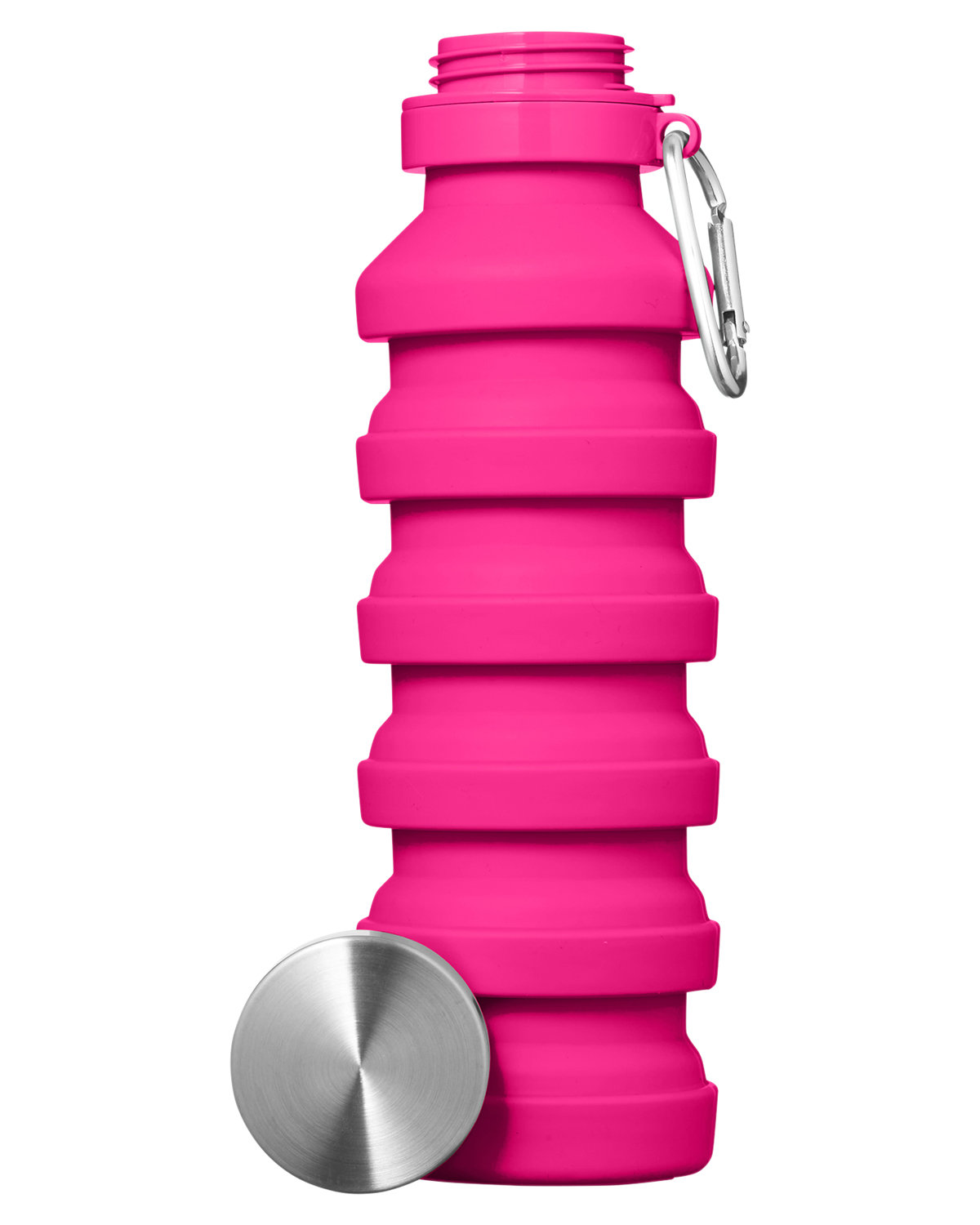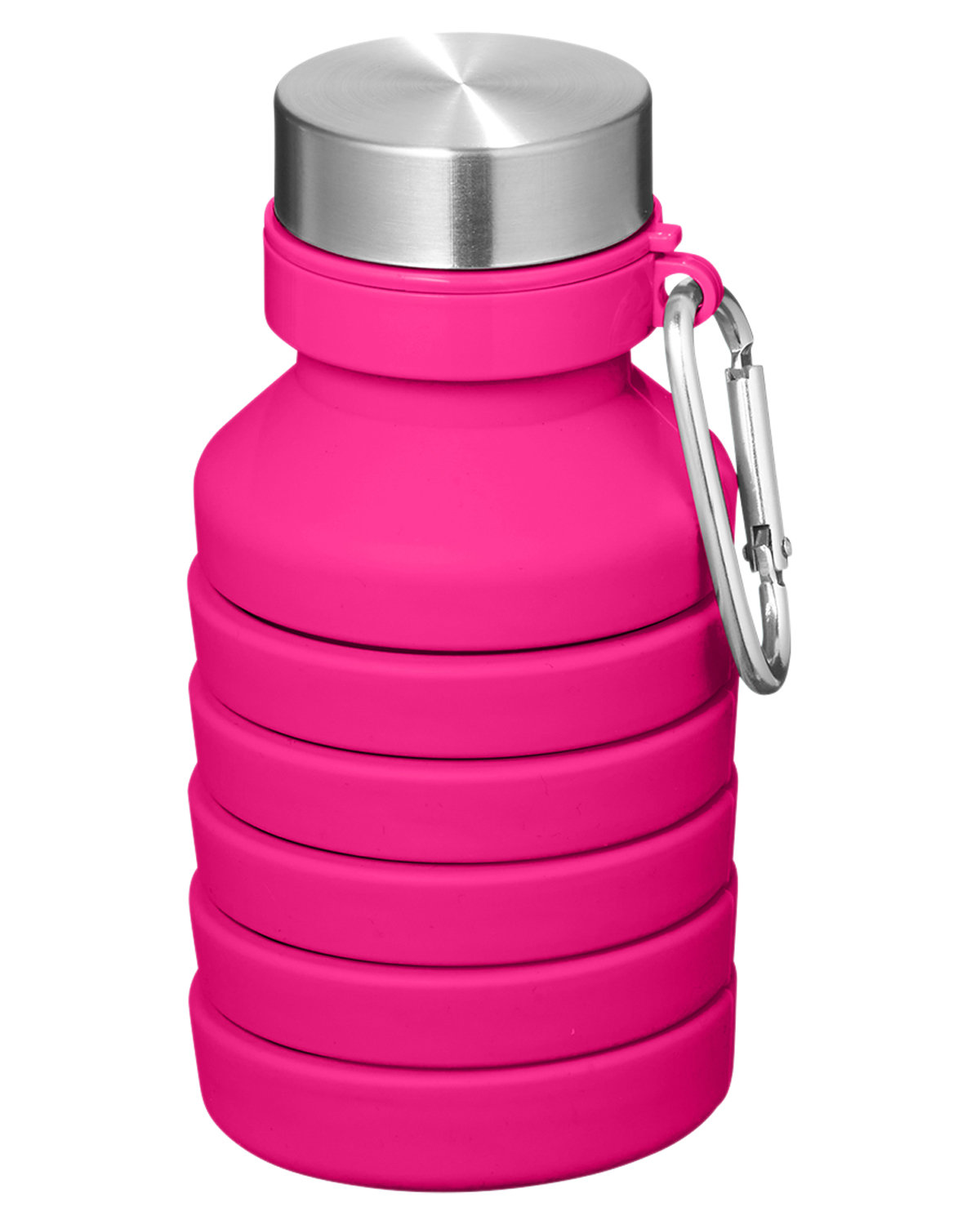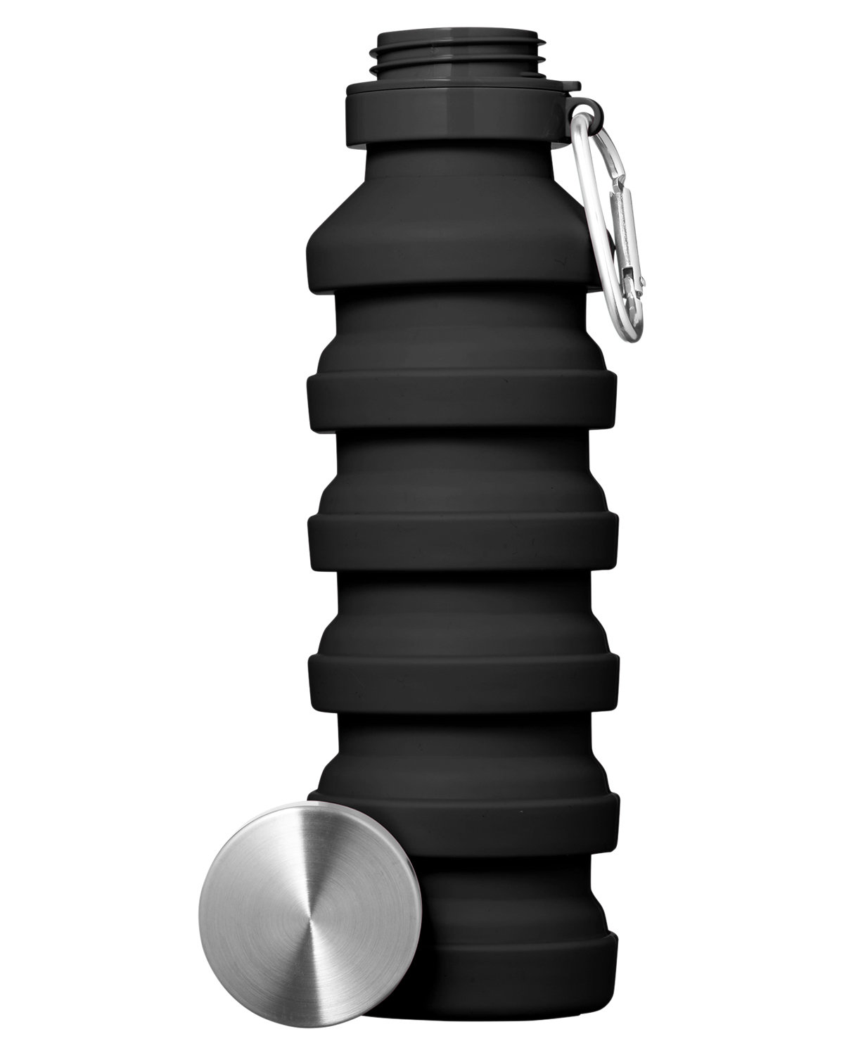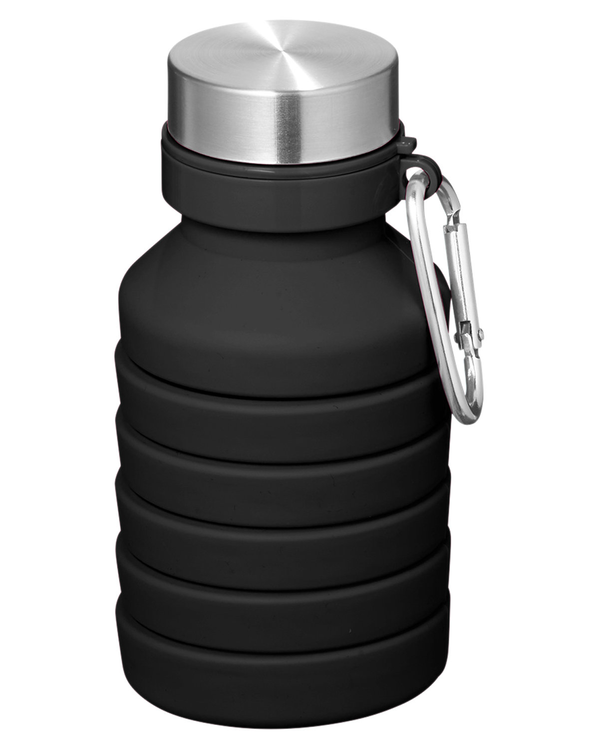 18 oz. single wall Silicone water bottle with Stainless Steel lid. Whether you’re hiking, traveling, or simply on the go, this collapsible design ensures you stay hydrated without sacrificing precious space in your bag. Screw-on Stainless Steel lid. Carabiner attached to neck of bottle. Folded size approx. 5.45″H x 2.83″Dia. Designed for use with cool beverages only. Hand wash. 9.2000″ H x 2.8000″ Diameter