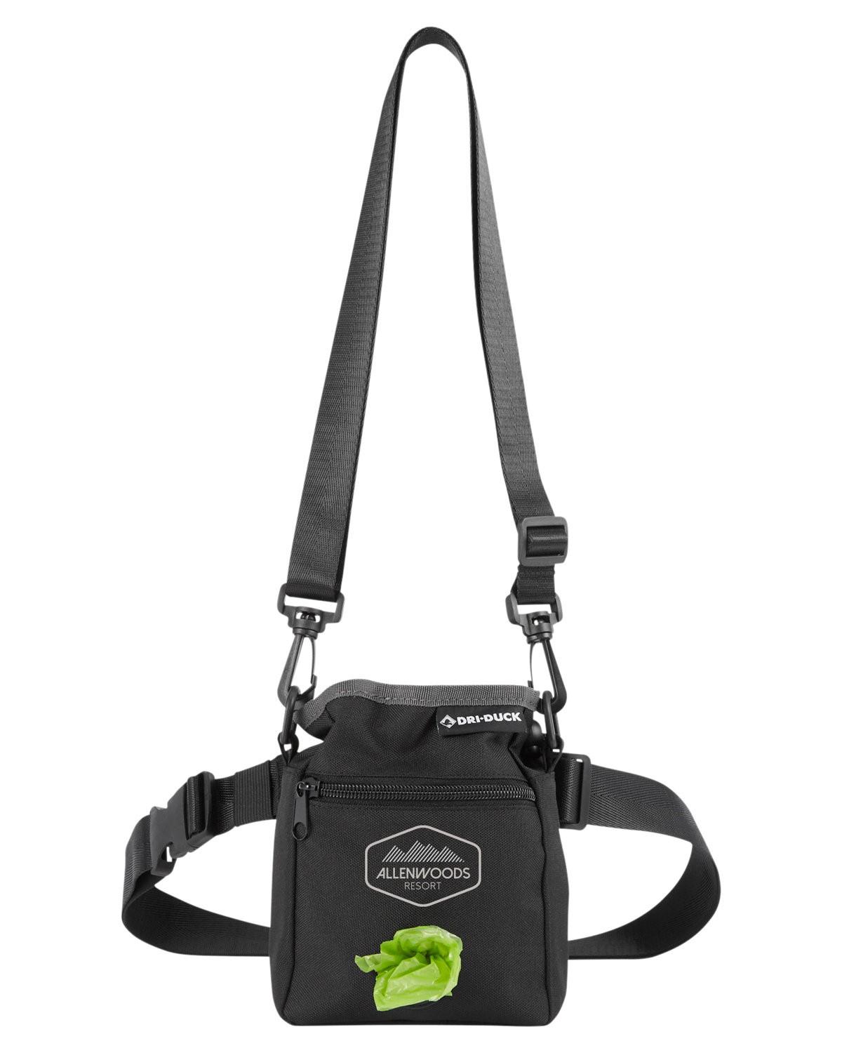 Multi-function reusable accessory for pet lovers made of eco-friendly 600D Recycled Polyester with 210D Recycled Polyester lining. With its innovative design and practical features, this Doggie Treat Bag is a must-have accessory for pet owners who demand the best for their four-legged companions. Wear it 3 ways: two included straps, one clips to the sides to wear over shoulder, the other feeds through bag’s belt loops to wear around waist or with attached metal belt hook. Shoulder straps and waist strap are both adjustable. Drawstring toggle closure to main treat compartment; front zipper closure with poop bag dispenser – one roll of approx. 15 bags included (each bag is approx. 13″ x 4.7″). Recommended weight tolerance: 4.4 lbs. 4.9000″ W x 6.9000″ H x 2.6000″ D