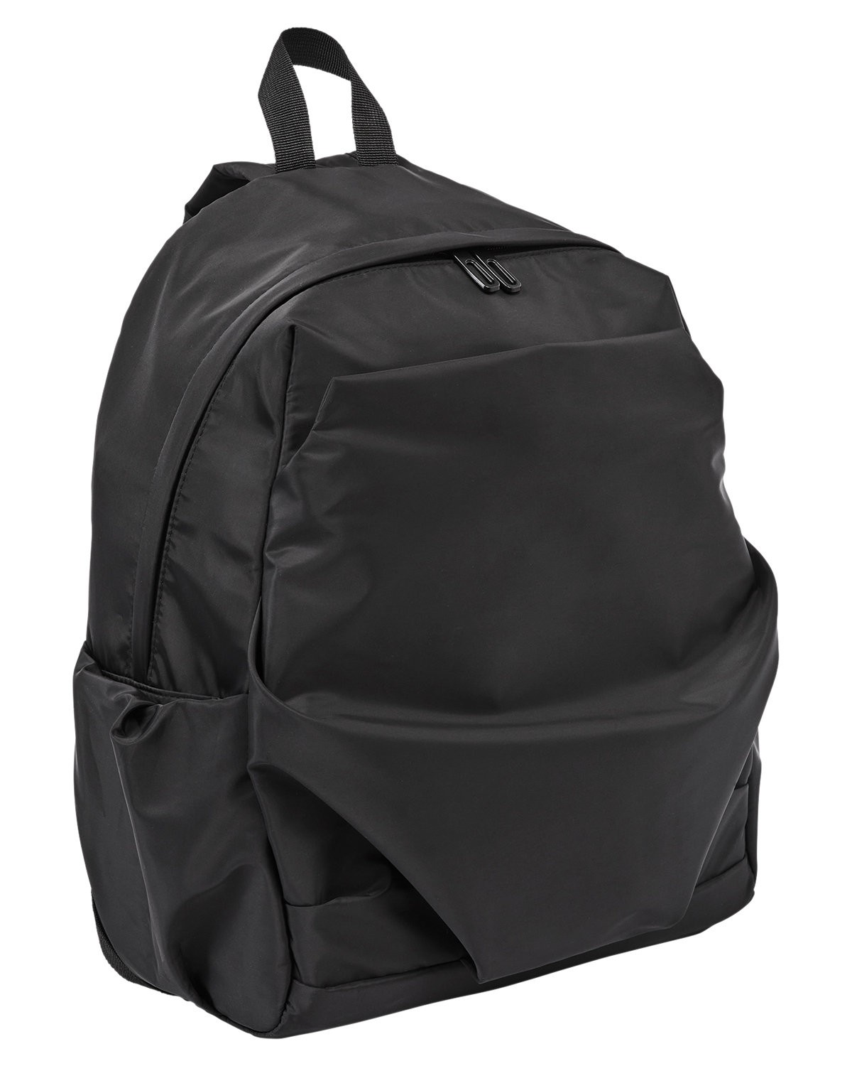 Laptop backpack made of 70D Recycled Polyester with knit backing. This backpack is the ultimate blend of fashion and functionality, allowing you to express your individuality while staying organized and on-trend. Large front zippered pocket; two self-fabric side bottle pockets. Interior features padded laptop pocket (for 15.6″ computers). Padded back; self-fabric padded adjustable shoulder straps. Recommended weight tolerance: 22 lbs. 13.4000″ W x 16.1000″ H x 7.5000″ D