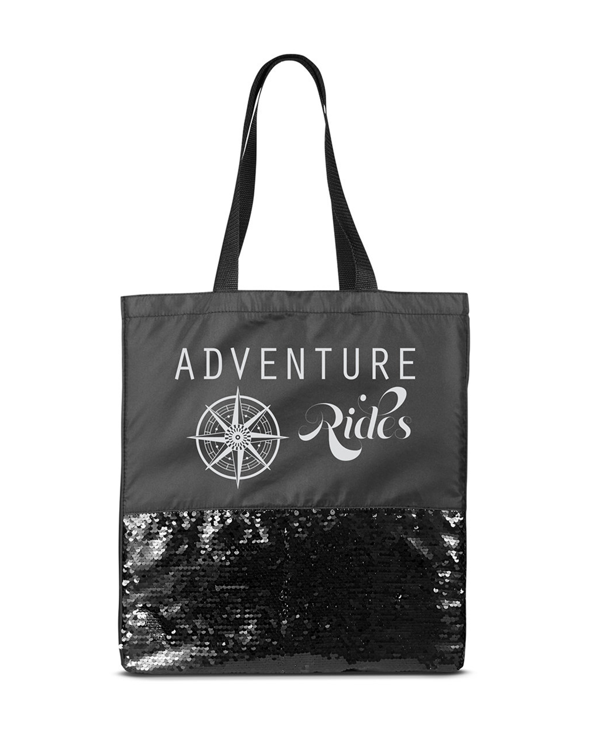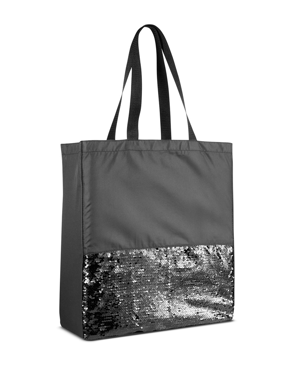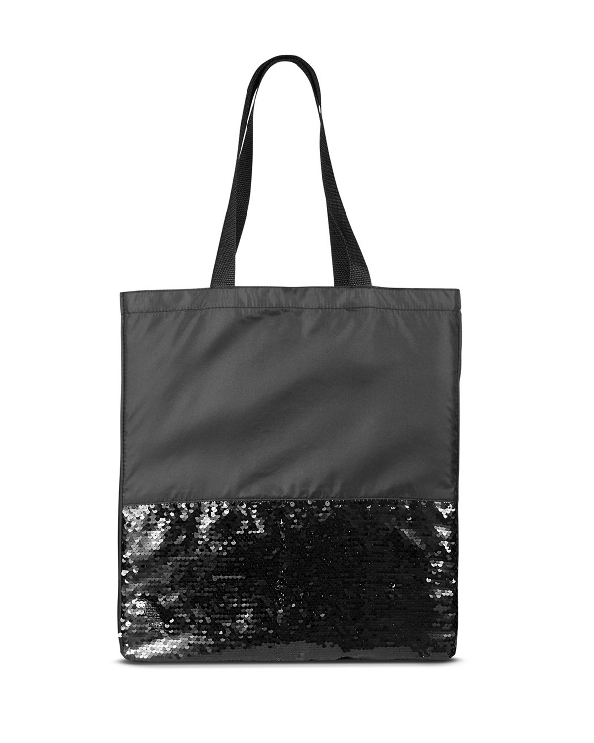 Soft and shimmery lightweight tote bag made of Pongee and featuring sequin front pocket. Zipper pocket made of 210D Polyester with sequins and measures approx. 7.875″w x 4″h. Features large open main compartment and 22.75″l x 1″w carry handles. Hand-wash only. Recommended weight tolerance: 13 lbs. 14″ W x 16.5″ H x 4.25″ D