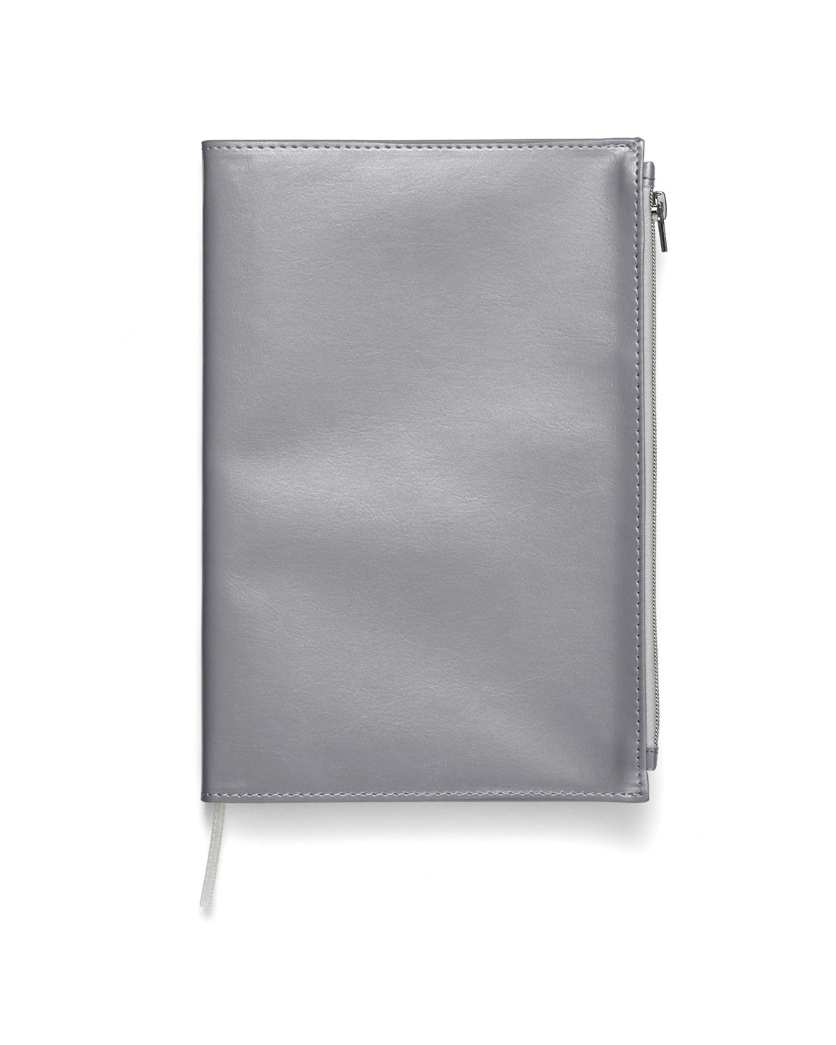 Metallic PU journal with integrated zipper pocket cover. Includes 80 lined sheets of 70g beige paper. Zipper pocket measures approx. 5.5″w x 8.26″h. Features stitched binding and matching ribbon bookmark. 5.7000″ W x 8.5000″ H x 0.5000″ D