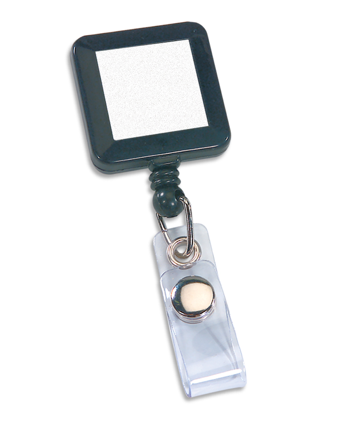 Made of ABS Plastic. Features a 30″-long, auto-retract cord, handy pocket/lapel clip on back. Convenient snap-on/off badge connector. 1.2500″ W x 1.2500″ H x 1.2500″ D